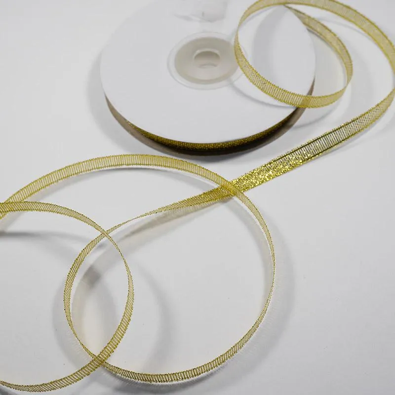 Лента узкая 6 мм ЗОЛОТАЯ 22 М ( Металлизированная )